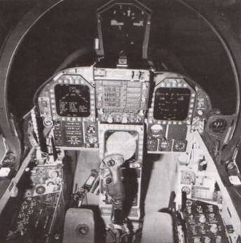 Чтобы радикально изменить ситуацию, Адам решил создать такое информационное поле в кабине, которое бы выдавало пилоту только необходимые в конкретный момент данные и имело бы легкосчитываемые формы. Вместо традиционной приборной панели в перспективе ему виделся один большой экран. На практике команда Адама разработала приборную панель с тремя многофункциональными цифровыми дисплеями фирмы Kaiser (пока еще на электронно-лучевых трубках), на которые выводилась практически вся необходимая летчику информация. Наиболее важные данные дополнительно транслировались на лобовое стекло через ИЛС. Несколько аналоговых приборов осталось в качестве резервных. В соответствии с концепцией HOTAS, на РУС и РУДах сосредоточили управление всеми наиболее используемыми функциями, что позволило пилоту во время боя не снимать с них руки. Ну, а система управления «просто» была цифровая электродистанционная. Первая в мире на серийном боевом самолете… Эх, не было кому назвать будущую машину «поколением 4+»!