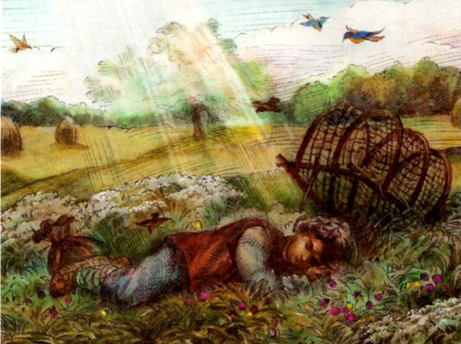 Вытянулся он посреди луга на теплой траве и только заснул, как услышал голос: «Зачем трудишься напрасно, Алексий? Не птиц взращивай — людей для меня!»