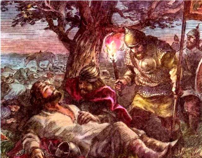 «Долг князя, — говорили ему, — следить за ходом сражения, подвигами воинов и награждать достойных. Мы все готовы на смерть. А ты, княже, живи. Без тебя не будет и победы».