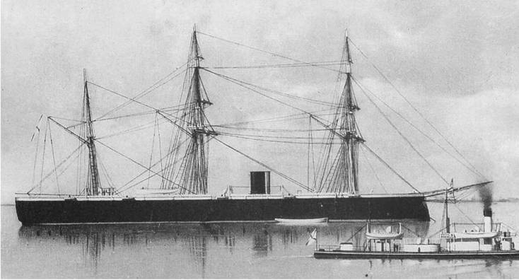 Водоизмещение 1693 т, вооружение 12–16 68-фунтовых орудий, броневая защита борта из 89-мм плит)