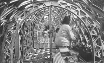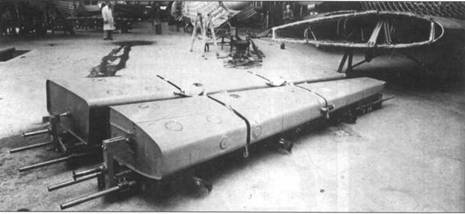 Безусловно, фюзеляж не мог быть строго цилиндрическим, коническим или сферическим,требовалась организация в нем вырезов под фонарь кабины, бомболюк и т.п. Тем не менее, большинство поверхностей самолета имели двойную кривизну, и для них вполне можно было построить геодезические линии. Что же касается крыла и оперения, то применение такой конструкции в свободнонесущем крыле сводилось к тому, что изгиб и перерезывающая сила в нем полностью воспринимались лонжеронами, крутящий момент – «геодезической» решеткой, состоящей из жестких элементов. Решетка, обтягивалась полотняной обшивкой, образуя наружную поверхность крыла. Количество нервюр при этом было минимальным, только для обеспечения установки кронштейнов навески моторов, механизации, шасси и т.п. Таким образом внутри крыла появлялись большие отсеки, в которых можно было разместить топливные баки.