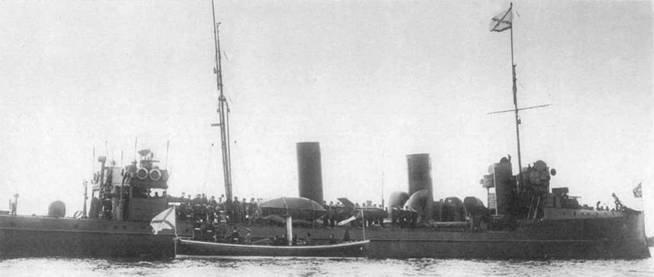 Эскадренные миноносцы "Москвитянин" , 18 июля 1906 г. и "Доброволец " (внизу).