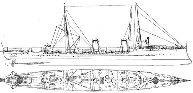 Неясно и происхождение предложенного русскому Морскому министерству проекта миноносца водоизмещением 570 т. Превосходя величиной и уступая в скорости строившимся тогда в Германии серийным миноносцам, он мог принадлежать к пионерной разработке фирмы (так часто делалось при иностранных заказах, чтобы понудить ”свое” правительство к переходу на более крупные корабли), к какому-либо из несостоявшихся заказов, а возможно, был эскизно разработан (как это не раз делали приезжавшие со своими предложениями главы иностранных фирм) по замыслу кого-либо из ответственных чинов Морского министерства. Известно лишь, что первым вступившим в переговоры с фирмой должностным лицом был не кто иной, как быстро делавший министерскую карьеру и. д. Начальника ГМШ контр-адмирал З.П. Рожественский.