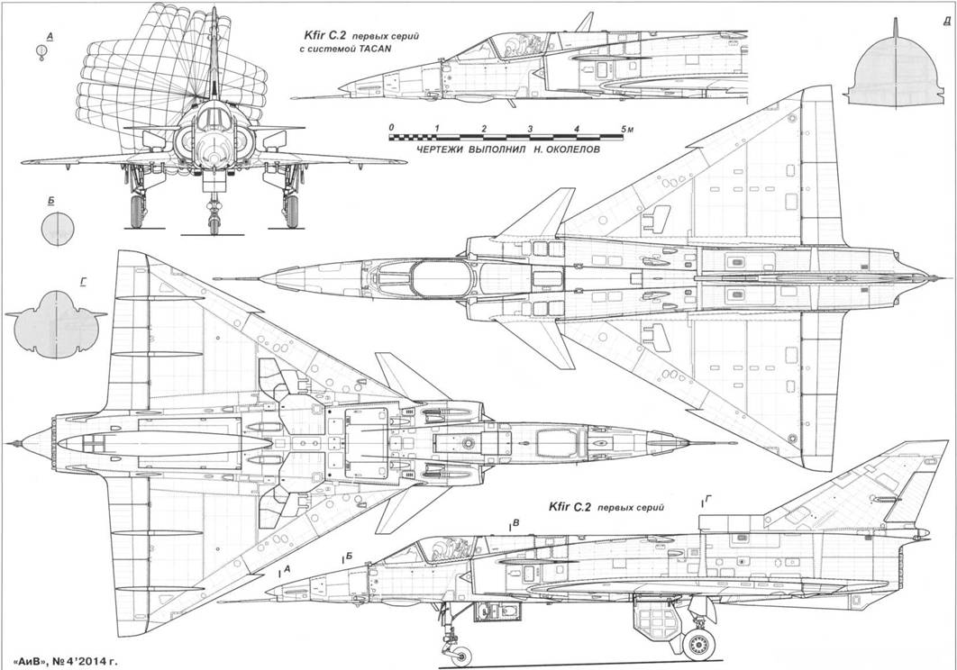 Однако возвратимся в Израиль. Серийные С.2 стали поступать в части весной 1977 г. Всего построили 185 машин. Маневренные характеристики самолета настолько улучшились, что все «Кфиры» первой модификации были переделаны в С.2. Однако площадь ПГО у них была меньше, ведь шпангоуты, к которым оно крепилось, не имели усиления. Обозначение доработанных самолетов изменили на «Кфир» С.1. В 1985 г. 25 таких машин взяли в аренду ВМС США и использовали в качестве имитаторов советских истребителей МиГ-23 во время учебных воздушных боев. В Штатах «Кфирам» С.1 присвоили обозначение F-21A. В 1989 г. их вернули в Израиль.