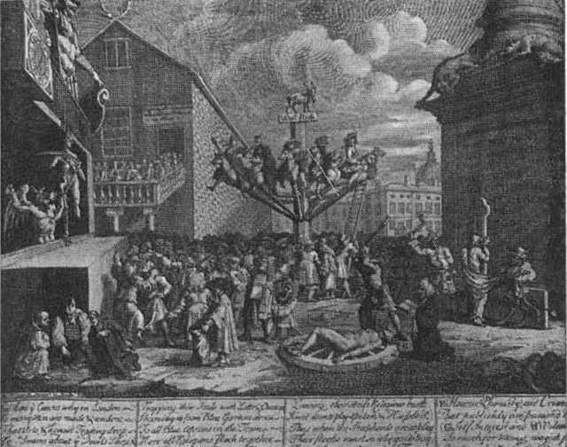 Хогарт, как и огромное большинство даже просвещенных англичан, не мог оценить тот зигзаг британской истории, который надолго обезопасил властителей страны от всякого рода неприятных волнений. Как бы плохо ни приходилось беднякам, их праведное негодование уже не могло найти простого и грозного, исхода, и против кого восставать, было, собственно говоря, непонятно. Обезглавив Карла I, англичане больше не рубили голов своим монархам: возможность королей творить зло, как, впрочем, и добро, была настолько ограничена парламентом, что никто из государей при всем желании уже не мог вызвать гнев подданных.