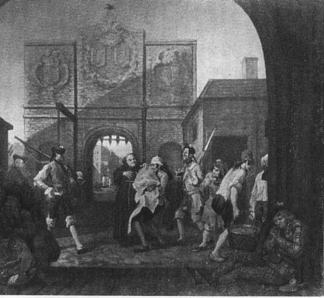 Карьера шлюхи. В тюрьме Брэйд-Уэлл. Гравюра. 1731 г.