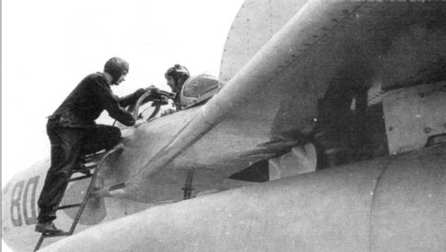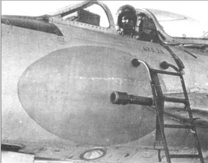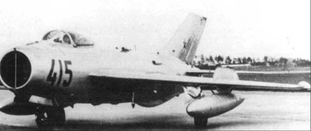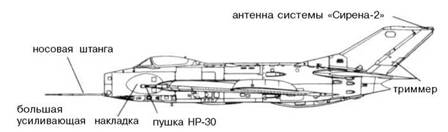 На этот МиГ-19, «420 красный», были установлены пилоны на передней кромке крьма. На них подвешивался блок с четырьмя