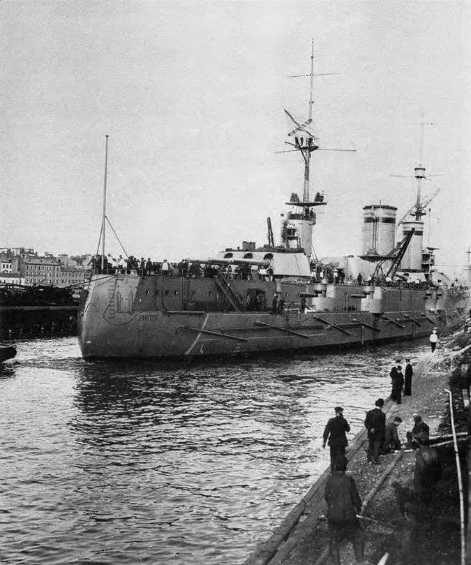 На фото вверху и справа: линейный корабль “Севастополь” уходит в Кронштадт. 15 сентября 1914 г.
