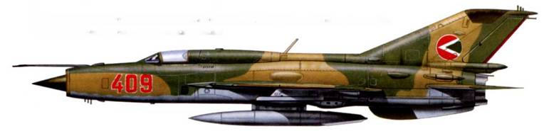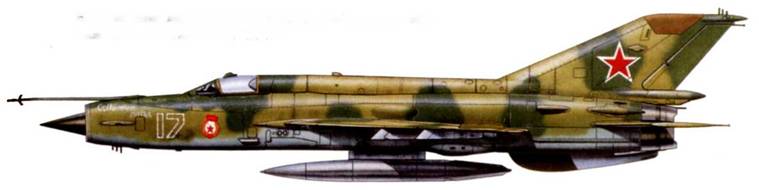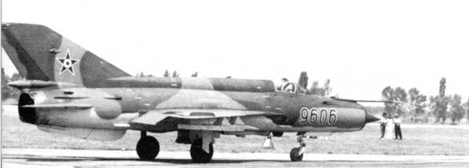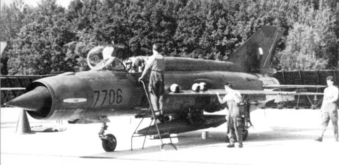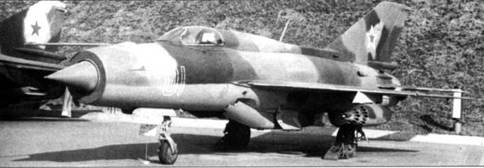 Некоторое количество истребителей МиГ-21Ф-13 ВВС ЧССР было камуфлировано. Обычно камуфлированные самолеты предназначались для выполнения разведывательных полетов. Цифры четырехзначного бортового номера нарисованы черной краской и обведены базой каймой. В начале 90-х годов XX века большинство чешских МиГов- 21 использовались в качестве учебных истребителей.