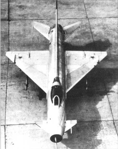 Первый прототип с крылом треугольной формы – Е-4. Самолет впервые поднялся в воздух 16 июня 1955 г. Самолет представлял собой комбинацию фюзеляжа от Е-2 с разработанным в ЦАГИ треугольным крылом.