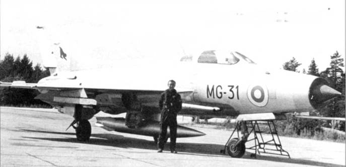 Финский МиГ-21бис во временной зимней окраске белого цвета, учения. На МиГ-21бис существенно, по сравнению с предшествующими модификациями, была улучшена система управления оружием.