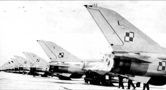 Истребители МиГ-21Ф-13 с подвешенными блоками НАР УБ-16-57У. Все истребители МиГ-21Ф-13, предназначенные для ВВС и морской авиации СССР строились на заводе № 21 в Горьком. МиГи на экспорт строил московский завод «Знамя Труда».