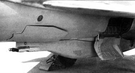Газотбойный щиток защищает расположенный на поверхности фюзеляжа вспомогательный воздухозаборник от попадания в него пороховых газов при стрельбе из пушки Г1Н-23Л. На обтекатели пушки сделаны жалюзи для вентиляции отсека вооружения.