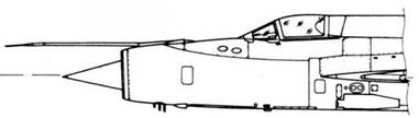 Конус регулируемого воздухозаборника, в конусе размещена антенна РЛС. На приемнике воздушного давления размещены датчики крена и тангажа. Информация от датчиков системы воздушных сигналов заводится в автопилот.