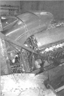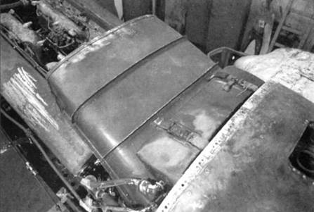 Правая панель капота снята. Обратите внимание на развернутый последний выхлопной патрубок. Это было сделано, чтобы он не задевал трубчатый подкос.
