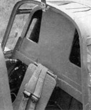 Вид на фонарь кабины сбоку. Три коротких штырька на фюзеляже, перед козырьком кабины пилота, являлись частью прицельной системы.