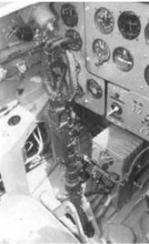Левый борт кабины пилота со штурвалом управления заслонкой радиатора, краном кислородной системы, расположенными рядом рычагами управления выпуском закрылков и шасси и краны пневмосистемы. На боковой стенке установлен РУД.