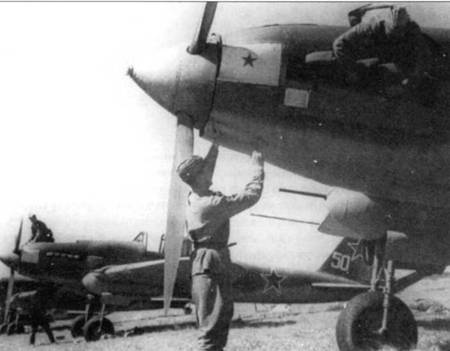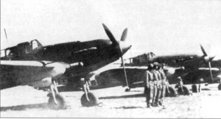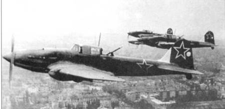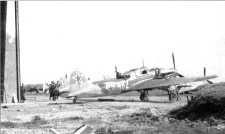 За период с марта по ноябрь 1945 года ВВС Болгарии получили в общей сложности 120 Ил-2 Тип 3 и 10 УИл-2, которые состояли па вооружении двух смешанных авиадивизий в Ямболе и Пловдиве. В 1947 году пятьдесят самолетов были конфискованы Югославией (за болгарскую «оккупацию» Македонии), а оставшиеся штурмовики несли службу до 1954 года. Самолеты па снимке несут опознавательные знаки раннего типа, использовавшиеся в 1944-46 годах.