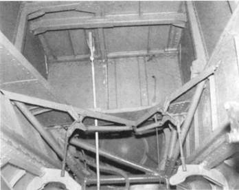 Узкий отсек в фюзеляже, куда устанавливался задний бензобак. Справа бронированная перегородка, отделявшая бак от кабины стрелка.