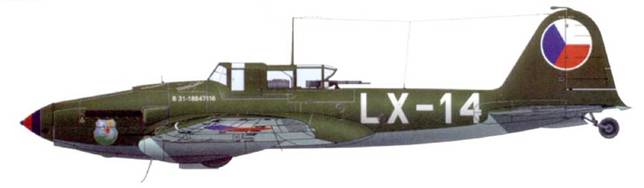 B-31 «LХ-14» 1-й эскадрильи 30-го авиационного полка ВВС Чехословакии, авиабаза Трепчианске Бискуипице, конец 1948 года. Верхние поверхности темно-зеленые, нижние – светло-голубые. Знаки национальной принадлежности и шести позициях. Обозначение самолета и его серийный помер (неподтвержденный) белым шрифтом только па левом борту.