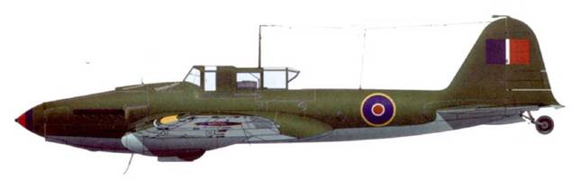 В-31 ВВС Чехословакии, «игравший» в фильме британский самолет, 1947 год. Верхние поверхности темно-зеленые, нижние – светло-голубые. Британские кокарды на фюзеляже и флажок па киле (цвета флажка в обратном порядке от принятого в английских ВВС). Красная и синяя полосы на коке винта. Широкие желтые полосы на верхней поверхности крыла.