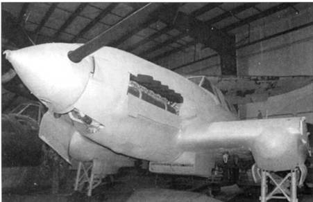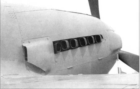 Носовая часть самолета с выхлопными патрубками и выходом охлаждающего воздуха.