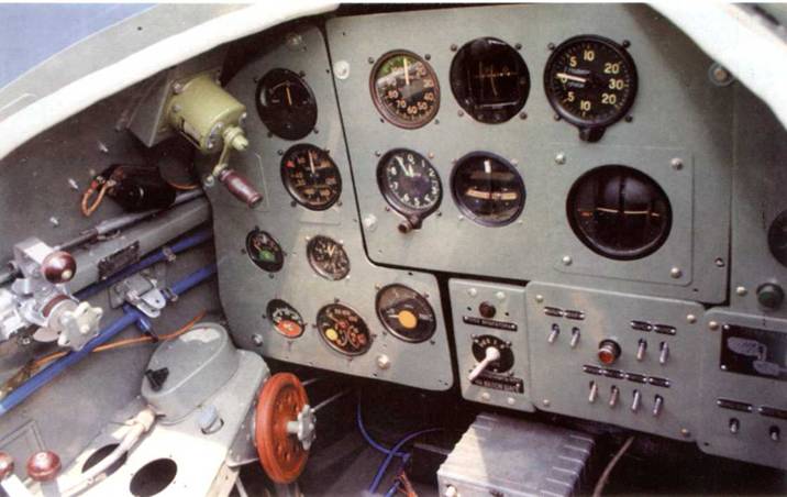 Для прицеливания при бомбометании с малых высот использовались белые линии, нанесенные сверху фюзеляжа перед козырьком кабины пилота. При стрельбе из пушек и пулеметов использовался простейший визир ВВ-1. Бронеплита толщиной 12 мм позади сиденья пилота имела два боковых выреза, через которые осуществлялся доступ к заднему бензобаку и его заливной горловине. На данном снимке отсутствует нижняя бронеплита. Обратите внимание на крепление привязных ремней.