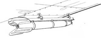 Узел крепления антенны к килю и весовой компенсатор руля направления.