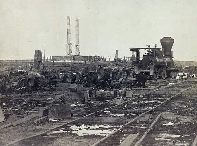 Северяне уничтожали месяцами накапливаемые амуницию, боеприпасы, провизию; всё, что свозилось поездами к пристаням, а оттуда морем, сейчас было предано огню. Тяжёлые сто- и стодвадцатипятикилограммовые мортирные бомбы, предназначавшиеся для того, чтобы стереть в порошок оборонительные сооружения Ричмонда, рвались, без толку сотрясая воздух. Заново отстроенный после подрыва южанами железнодорожный мост через Чикахомини был взорван опять. Когда его обломки поглотила река, по рельсам пустили подожжённый состав с боеприпасами. Паровоз на полном ходу ухнул в грязь под обрывающимися на топком берегу конструкциями, утягивая за собой череду пылающих и взрывающихся вагонов. Ночь напролёт рвались и трещали патроны со снарядами, горели форма и провиант, а к утру станция Сэвидж-стейшн напоминала железнодорожный узел Манассас четырёхмесячной давности: дым, пепел и запустение. МакКлеллан, всё так же непоколебимо уверенный в том, что противник превосходит его числом, пятился на юг, к реке Джеймс-ривер.