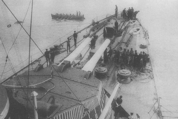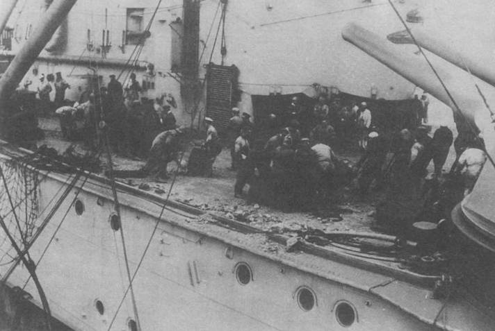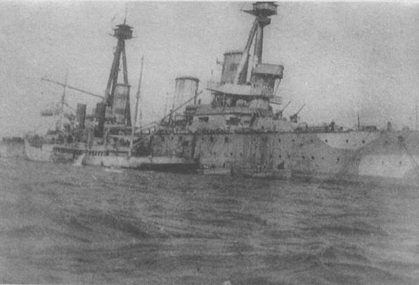 Русско-японская война 1904-05 гг. полностью подтвердила правильность идей Куниберти и придала новый импульс планам создания британских броненосных (эскадренных) крейсеров, поскольку она показала, что они без особого для себя ущерба имели средства и возможность борьбы с линейными кораблями противника. На бездарность командования русским военно-морским флотом и ужасающее тактическое бессилие 2-й Тихоокеанской эскадры по тем или иным причинам пока удобно было смотреть сквозь пальцы. Но сам ход боевых действий в русско-японскую войну, переход 2- Г‹ Тихоокеанской эскадры с Балтийского моря на Дальний Восток изучали самым тщательным образом. Причем Фишер был не одинок, зыдвигая идею, что скорость представляет собой достаточную защиту против снарядов крупного калибра.
