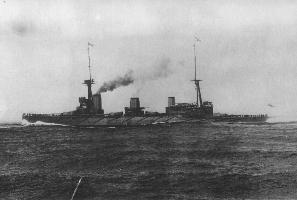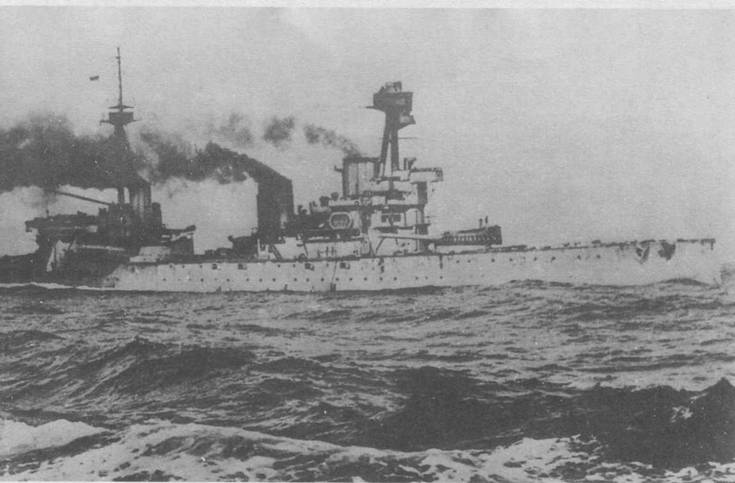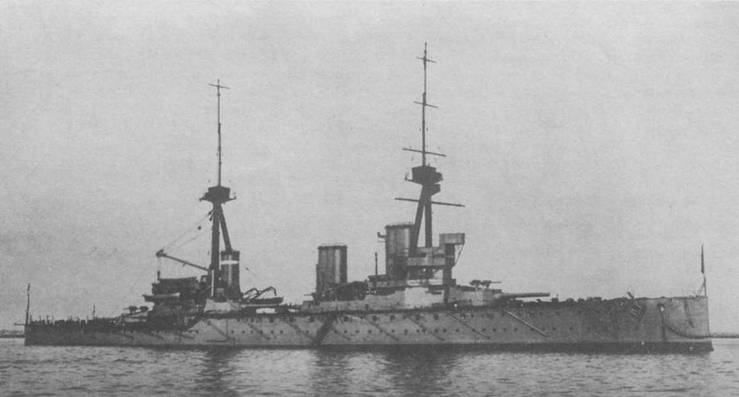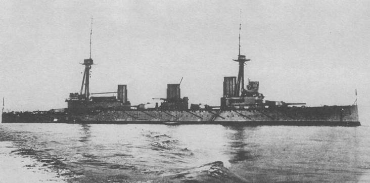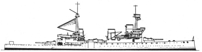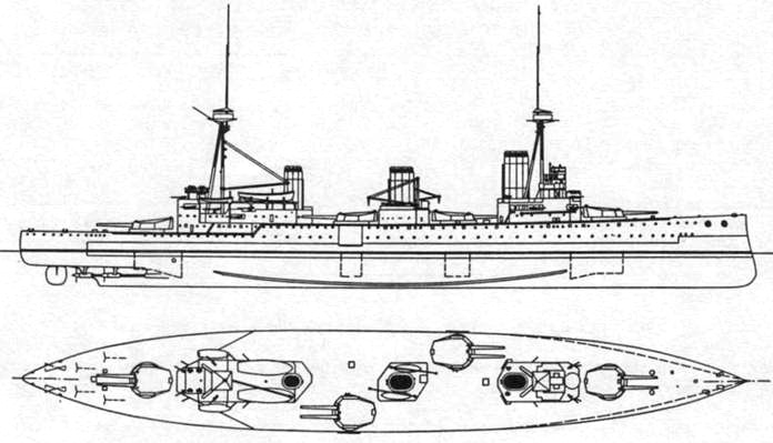 “Дредноутом” количеством тяжелого вооружения и более слабым бронированием, тем более что в первую очередь выполнялось требование высокой скорости.