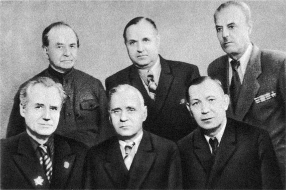 Друзья И. С. Исакова по революции, гражданской войне и строительству советского военно-морского флота: (слева направо) 1 ряд — Л. Вербицкий, И. Кудзелько, В. Цыганков; 2 ряд — Н. Воронин, А. Крастин, М. Степанов. 1960 год.