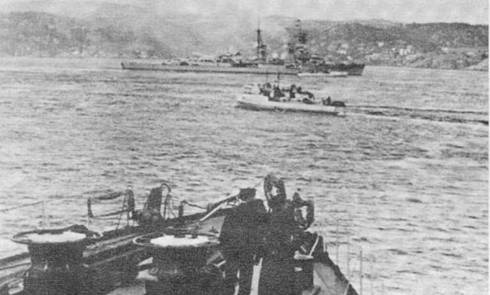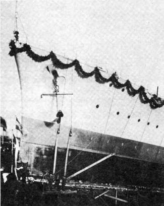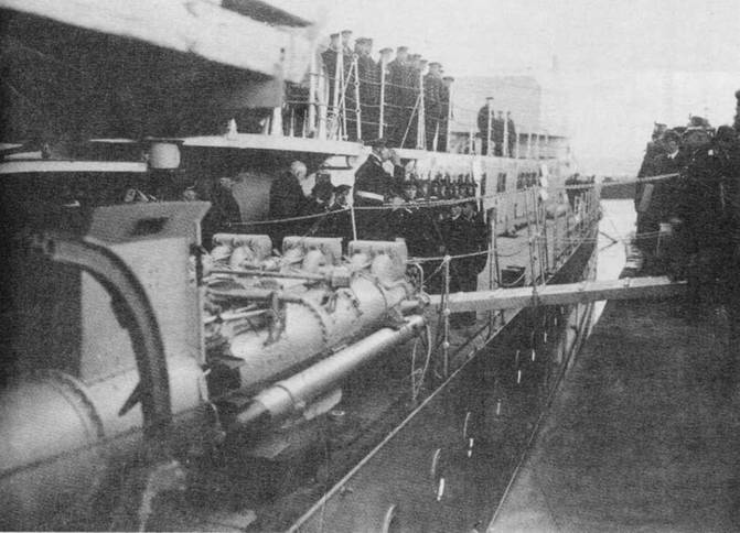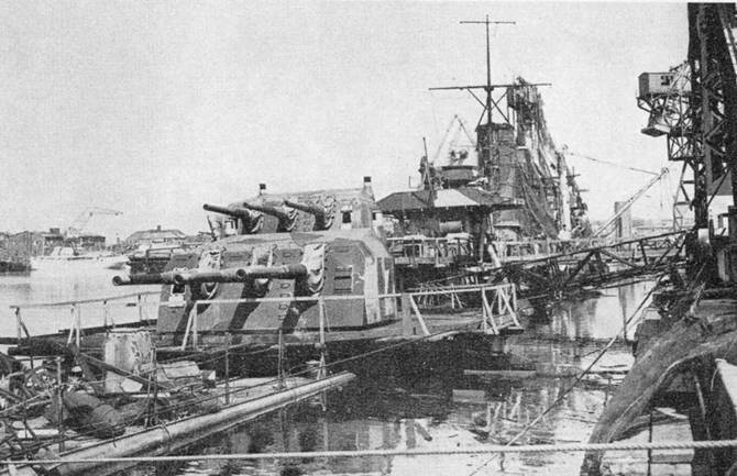 Во время спуска шлюпки. Башни главного калибра. 1939 г.