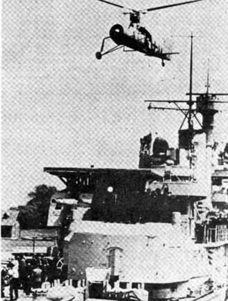 На шкафуте в 1934 г. во время установки крана и катапульты и в 1935 г. с самолетом Не-60