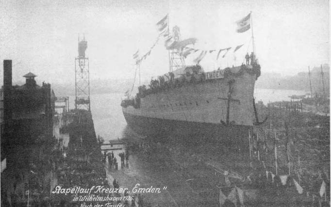 Заложен 8 декабря 1921 г. на Казенной Военно-морской верфи в Вильгельмсгафене. Первоначально получил обозначение Neubau А. “Ersatz Niobe”, по другим данным, “Ersatz Ariadne”. Стапельный период затянулся из-за экономических и политических проблем (ввода французской армии в Рурскую область). 7 января 1925 г. состоялась торжественная церемония спуска и крещение корабля, который назвали “Эмденом”. Он унаследовал свое имя от прославленного рейдера первой мировой войны. Речь во время церемонии произнес командующий военно-морским флотом адмирал Ганс Ценкер. Крестной матерью нового корабля стала фрау Юта фон Мюллер, вдова командира первого “Эмдена”.