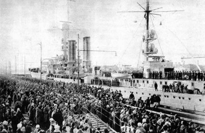 на 4-стр. “Эмден” вернулся из дальнего плавания.