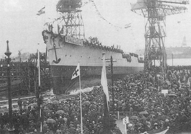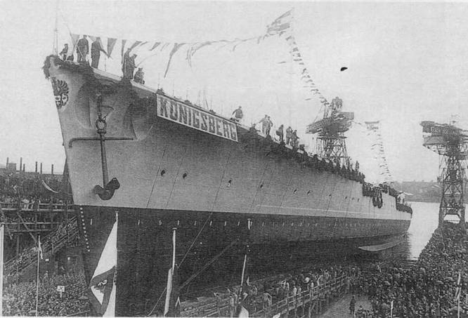 В части, касающейся крейсеров, ограничение было следующим: в составе немецкого флота разрешалось иметь 6 малых (легких) крейсеров. Водоизмещение крейсера не должно было превышать 6000 тонн. Замена допускалась только через 20 лет службы. Первоначально крейсерские силы Рейхсмариньг состояли из 2-х крейсеров “Газелле” и “Берлин”. Союзники в своем желании разоружить побежденных перестарались и оставили корабли, уже подходившие к пороговому 20-летнему возрасту. Логичнее было бы оставить крейсера типа “Кенигсберг” или “Магдебург”, 20-летний срок службы которых кончался только в середине 30-х гг. Немцам непроизвольно была оставлена лазейка, которой они и воспользовались. Вскоре из списков флота был исключен первый крейсер, и начато проектирование нового корабля: в 1921 г. заложили новый крейсер, получивший название “Эмден”. При его проектировании за образец взяли последние крейсера кайзеровского флота типа “Кельн II”. Создание этого корабля преследовало ограниченные задачи сохранить кадры конструкторов и высококвалифицированных рабочих-судостроителей и опыт строительства больших боевых кораблей. Единственным серьезным отличием от кораблей первой мировой войны стала новая система управления артиллерийским огнем. Пока военно-морская верфь в Вильгельмсгафане вела работы по строительству нового “Эмдена”, конструкторы уже вели работы над новым типом крейсеров. Названия всех начинались на букву “К”, и поэтому они получили неофициальное название «Крейсера типа “К”». Головной “Кенигсберг” заложили на стапеле, освободившемся от “Эмдена”. Всего в серии было три корабля. Эти крейсера стали шедеврами своего времени, хотя и оказались в тени построенных одновременно с ними броненосных кораблей типа “Дойчланд”.