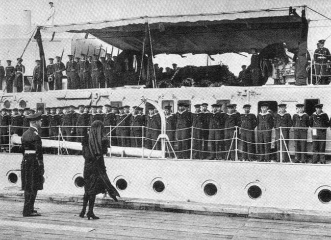 на 2-й стр. На “Кельне" во время подъема военно-морского флага;