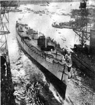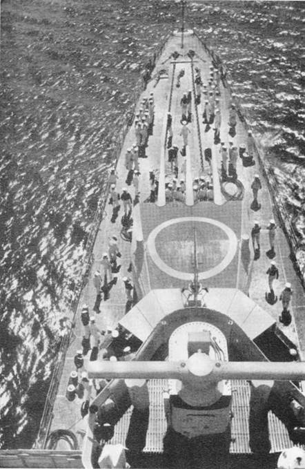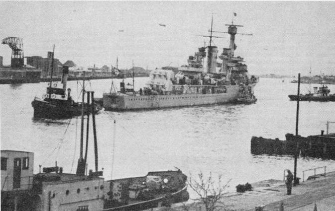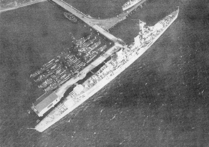 В середине сентября на нем подняли флаг командующего эсминцами контр-адмирала Крейша. “Кельн” продолжал выполнять обязанности учебного корабля. В основном он стоял на якоре под защитой зенитных батарей. В небе господствовала союзная авиация. Тем не менее крейсер смог пройти докование в плавучем доке в Осло.