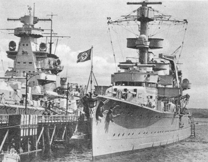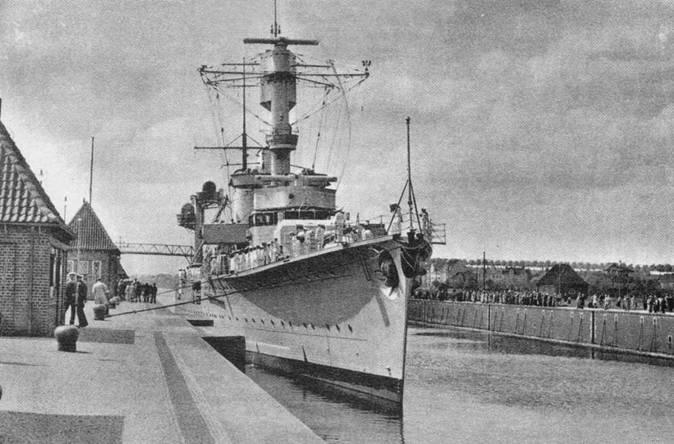 15 октября 1925 г поднят военно-морской флаг. В ночь с 9 на 10 апреля тяжело поврежден английской авиацией в Киле. 26 апреля 1945 г. исключен из состава флота