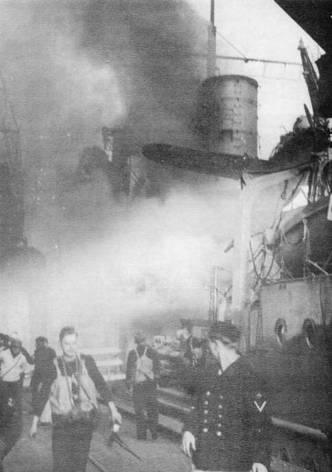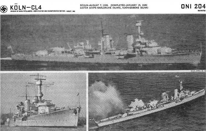 В ночь с 13 на 14 декабря 5 группа британских бомбардировщиков атаковала немецкие корабли в Осло-фиорде. 80 самолетов типа “Бофорт” атаковали “Кельн”. Его зенитчикам удалось сбить пять самолетов. Прямых попаданий в крейсер не было, но из-за ближних разрывов оказалась нарушенной центровка валов, и его скорость ограничивалась 15 узлами. Находящийся рядом эсминец “Карл Галстер” повреждений не получил.