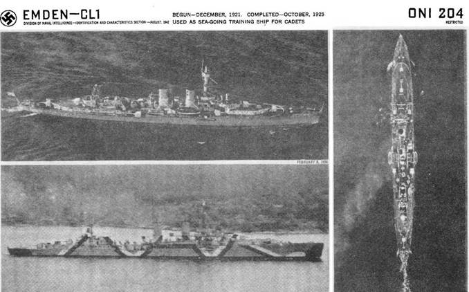 Примерно через две недели корабль становится к заводской стенке, с него демонтируются угольные котлы и устанавливаются нефтяные. В это же время высота труб была уменьшена на 2 метра, также была установлена новая двойная радиоантенна. 29 сентября 1934 г., когда “Эмлен” вернулся в состав флота, было принято решение использовать его как учебный корабль. В это время в командование кораблем вступил капитан 2 ранга К. Дениц, будущий командующий подводным флотом, второй и последний фюрер Третьего Рейха. Командование крейсером в будущем заметно облегчит К. Деницу подбор кадров для подводных лодок. Но пока его внимание было приковано к подготовке к большому заграничному походу. 10 ноября 1934 г. “Эмден” в пятый раз выходит в дальнее плавание из Вильгельмсгафена. Во время этого похода он заходил в следующие порты Санта-Круз де Ла Пальма, Капштадт, Ист Лондон, Порта Ачелинк, Мамбаса, Порт Виктория, затем в Тринкомали (остров Цейлон) и Кочин.
