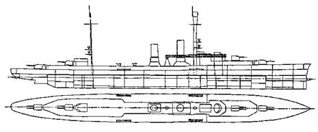 Бронирование: палуба и артиллерийские щиты главного калибра 50 мм, боевая рубка 100 мм.