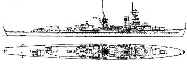 Основные элементы нового крейсера следующие: водоизмещение 6990 т (в полном грузу), 5600 т (стандартное), длина 155,1 м (наибольшая), 150,5 м (по ватерлинии), ширина 14,3 м, осадка 5,93 м (в полном грузу), 5,15 м (при стандартном водоизмещении).