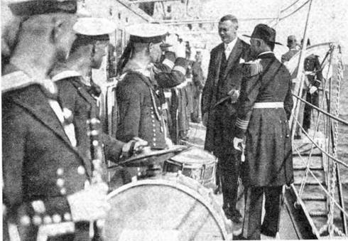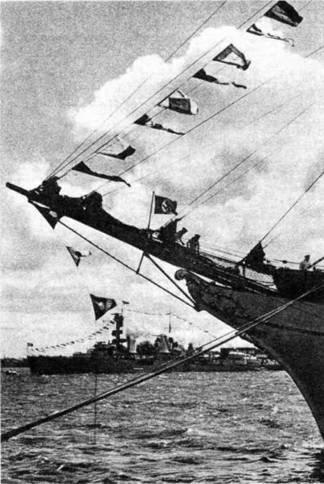 На шкафуте (вверху) Перед парадом. Киль 13 июня 1936 г.