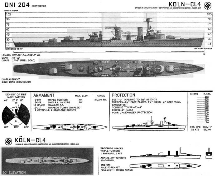 Что касается артиллерийского вооружения, то впервые в мире на легких крейсерах появились трехорудийные башни для 150-мм орудий главного калибра. Интересным было и их расположение, прямо противоположное общепринятому: одна башня в носу и две в корме. Во время рейда в океане крейсер при встрече с противником должен был уходить, поэтому максимальное количество орудий должно стрелять именно в кормовых секторах. Еще одним назначением крейсеров была разведка для нужд линейного флота. В “Морском боевом руководстве по разведывательной и охранной службе” о легких крейсерах записано, что бой легкого крейсера: “может быть оправдан только тогда, когда без него не произвести разведку” (Кобчиков Е.Ю. “Надводные силы Кригсмарине в войне против Советского Союза в 1941-1945 гг.”. с. 23). Корабли в целом получились удачными, немецкие историки дают им следующую оценку: