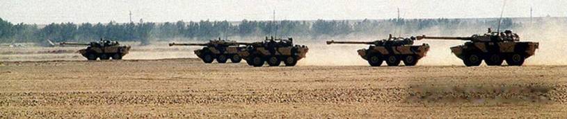 Французские разведывательные машины АМХ-10RC следуют через пустыню. 1991 год.