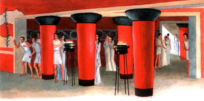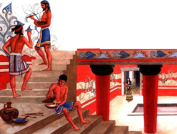 Когда археологи начали раскопки в Кноссе, они думали, что нашли целый город, а это оказался один огромный дворец! Нигде и никогда люди не строили таких необычных дворцов, как этот. Здесь были роскошные залы для приёмов и просторные мастерские для ремесленников. В огромных кладовых стояли сосуды высотой в человеческий рост. В них хранилось вино, мёд, масло. В бассейны и ванные комнаты был подведён водопровод. Трубы из обожжённой глины тянулись к источнику на несколько километров от дворца!