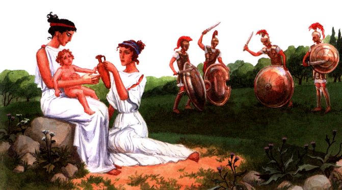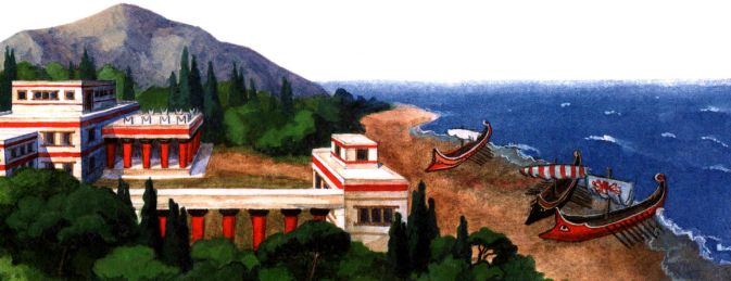 На Крите никогда не случалось войн. Окружённый со всех сторон морем, покрытый горами, остров был неприступен для завоевателей. Иногда на горизонте появлялся пиратский флаг. Но критяне не боялись пиратов. У них был свой флот — лучший в мире. Критяне прогнали пиратов из Средиземного моря.