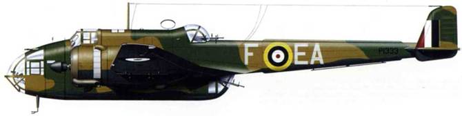 Пара «Хэмпденов» в позднем камуфляже, необычно выглядят бортовые коды, от которых сохранилась только одна литера – позывной самолета. Можно предположить, что это самолеты из состава эскадрилий, переданных Береговому Командованию.